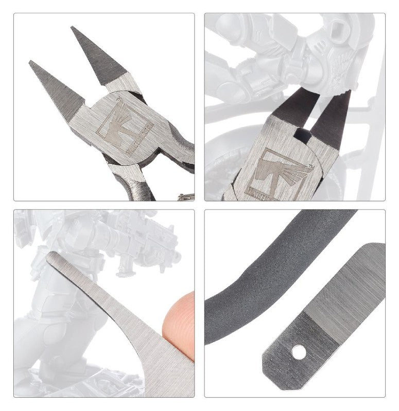 The Warhammer Colour Tool Set provides you with the essential tools to cleanly remove miniatures from the sprue and to eliminate mold lines before assembly. The tools are easy to use, making them ideal for beginners in the Warhammer hobby.